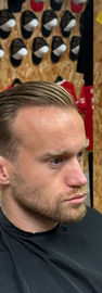 Karolina specialises in classic barbering, from clean skin fades and sharp side parts to traditional buzz cuts and precise scissor cuts. She enjoys working with both classic and modern styles and always recommends bringing inspiration photos so she can tailor the cut to suit you perfectly. Outside the shop she enjoys jazz and swing music, along with arts, crafts, antiques and board games.